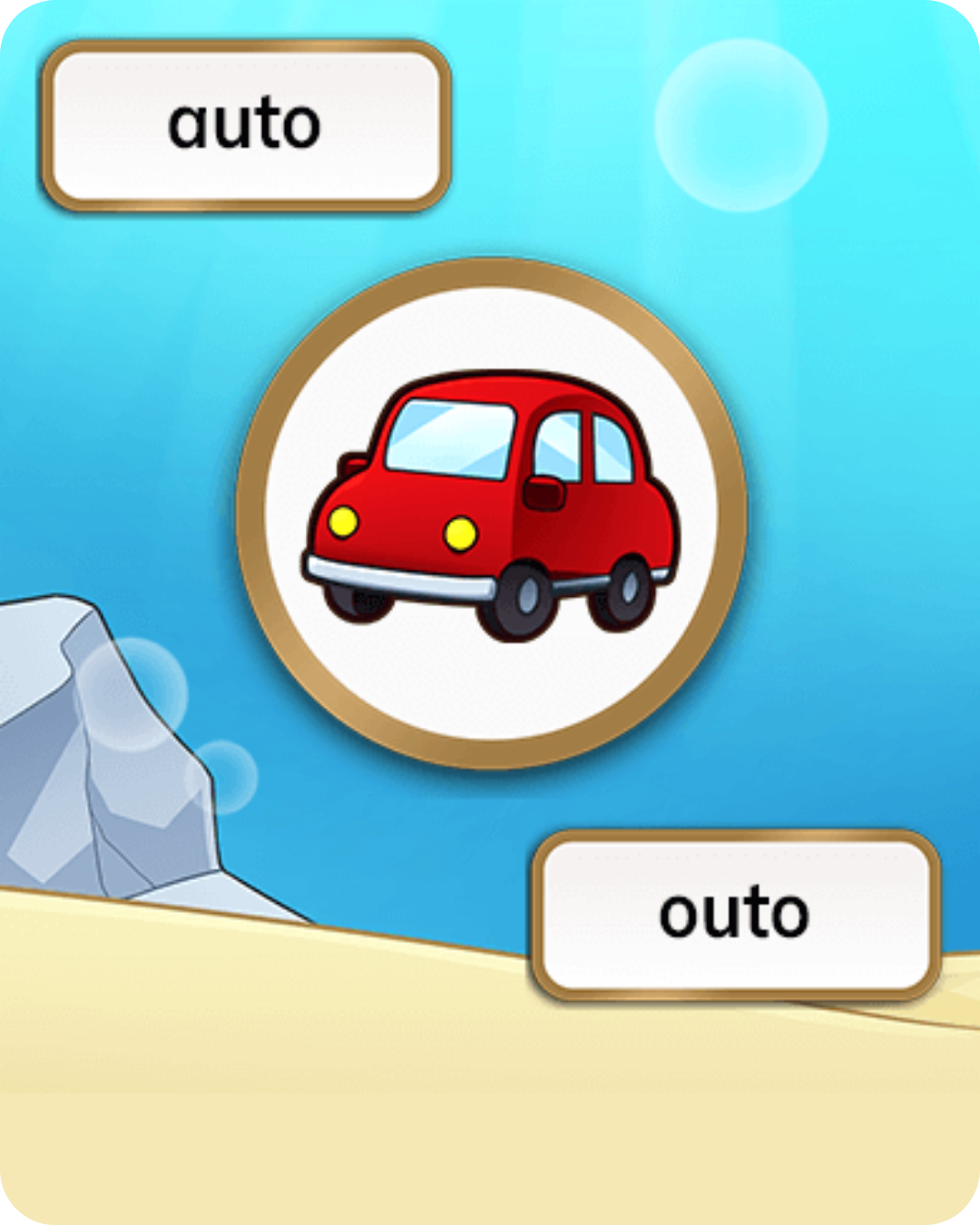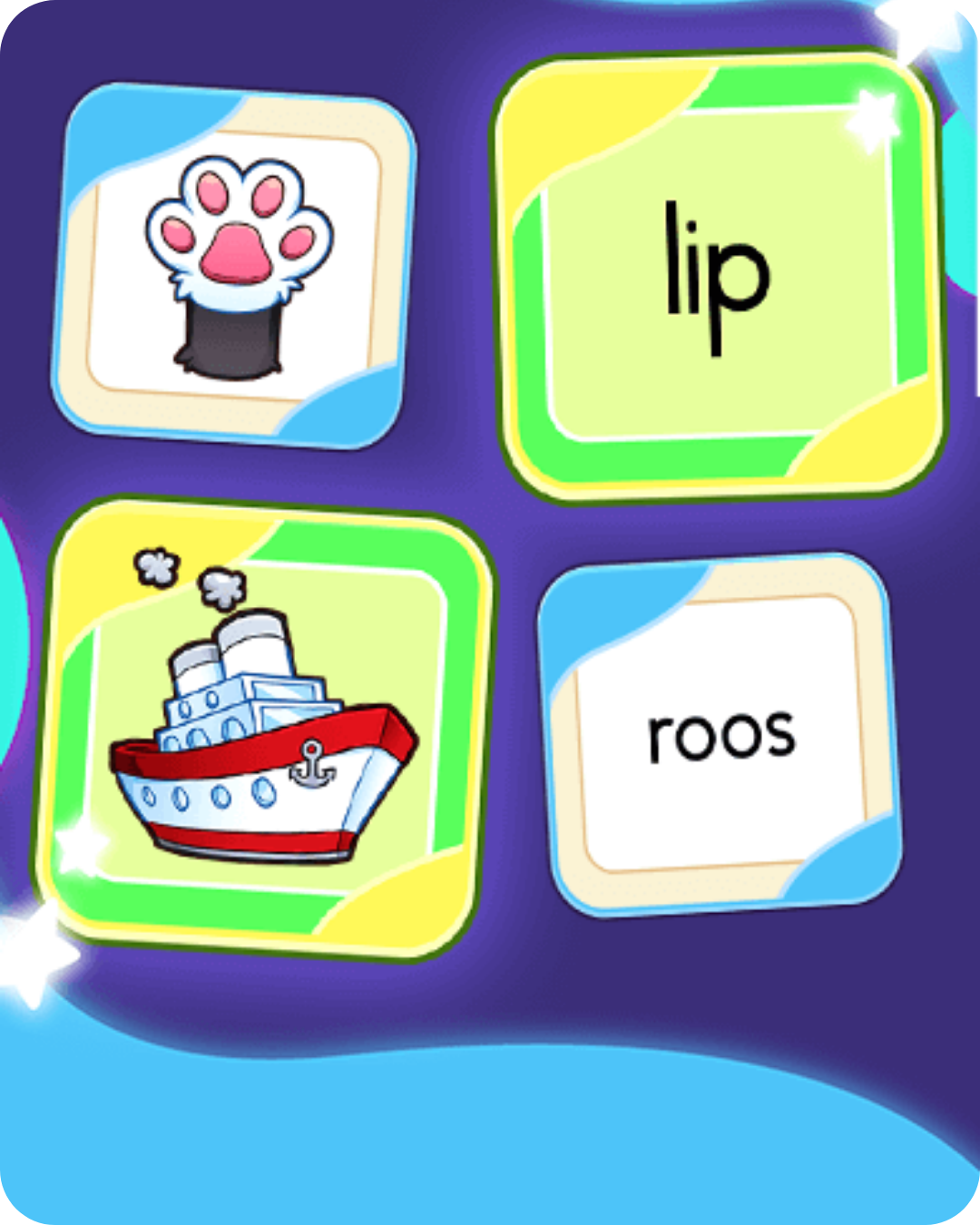 In dit spel oefenen de kinderen met het automatiseren door het lezen van klankzuivere woorden met één of twee lettergrepen.