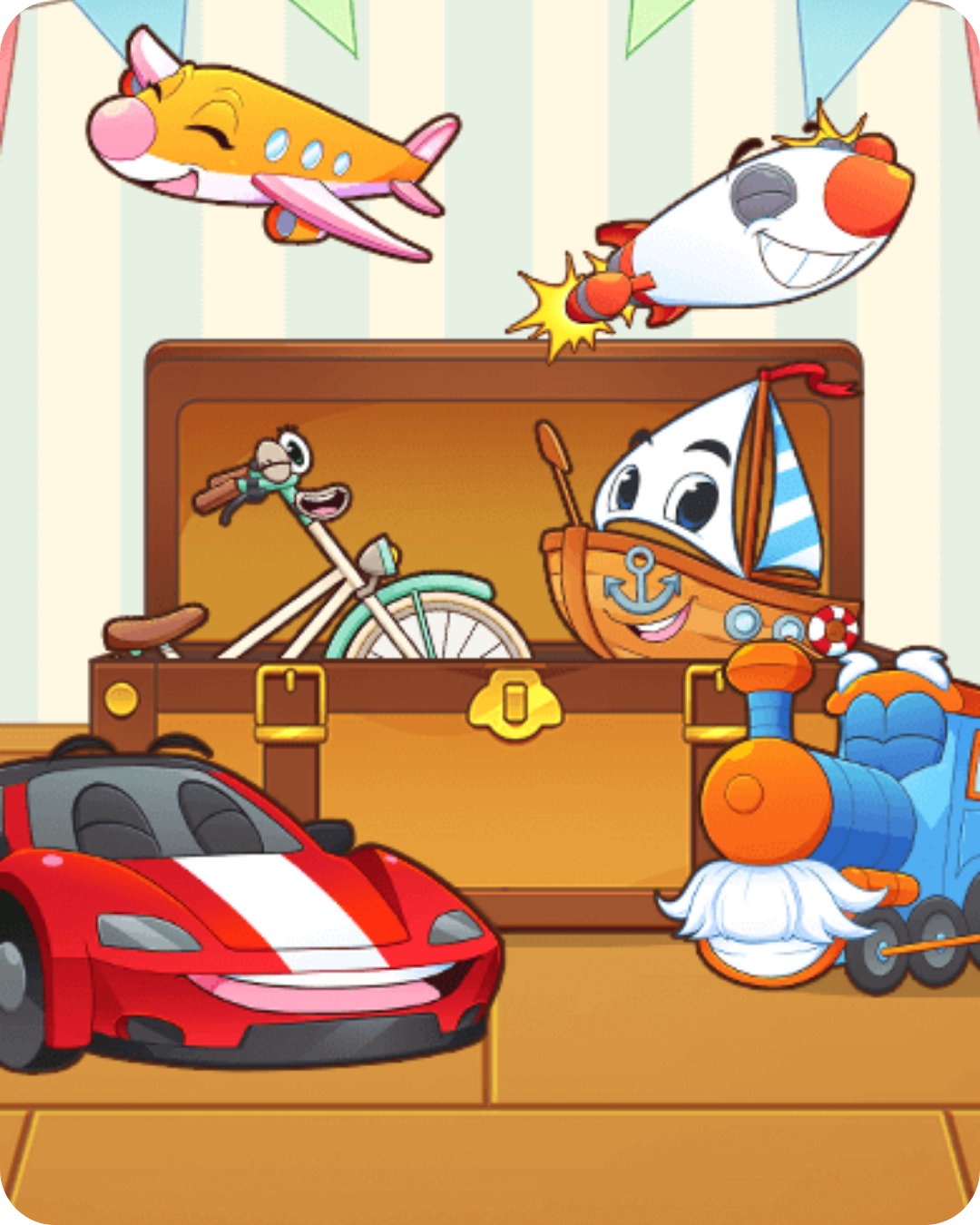 In dit spel ontdekken de kinderen verschillende woorden en kenmerken die passen bij voertuigen.