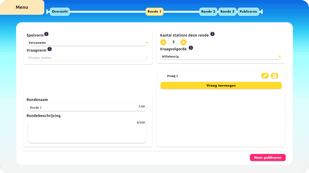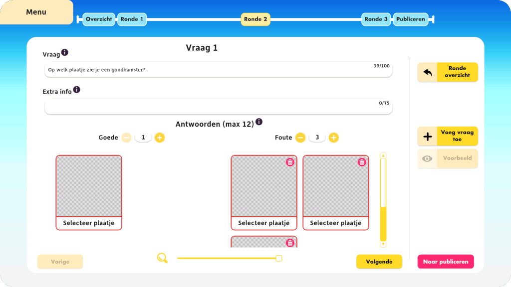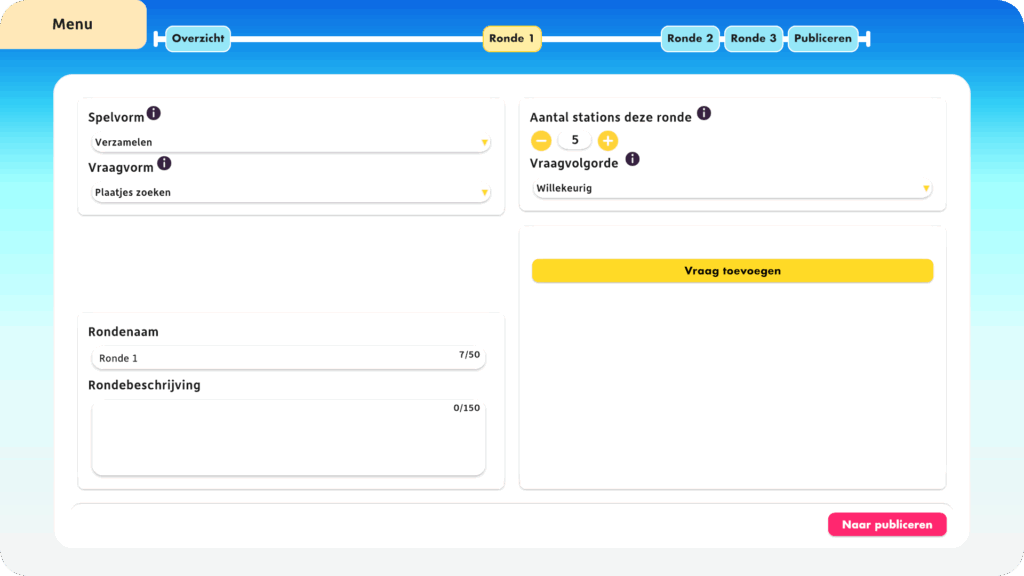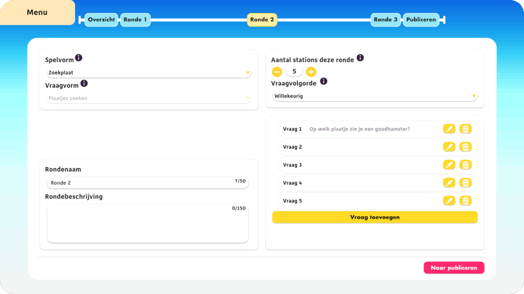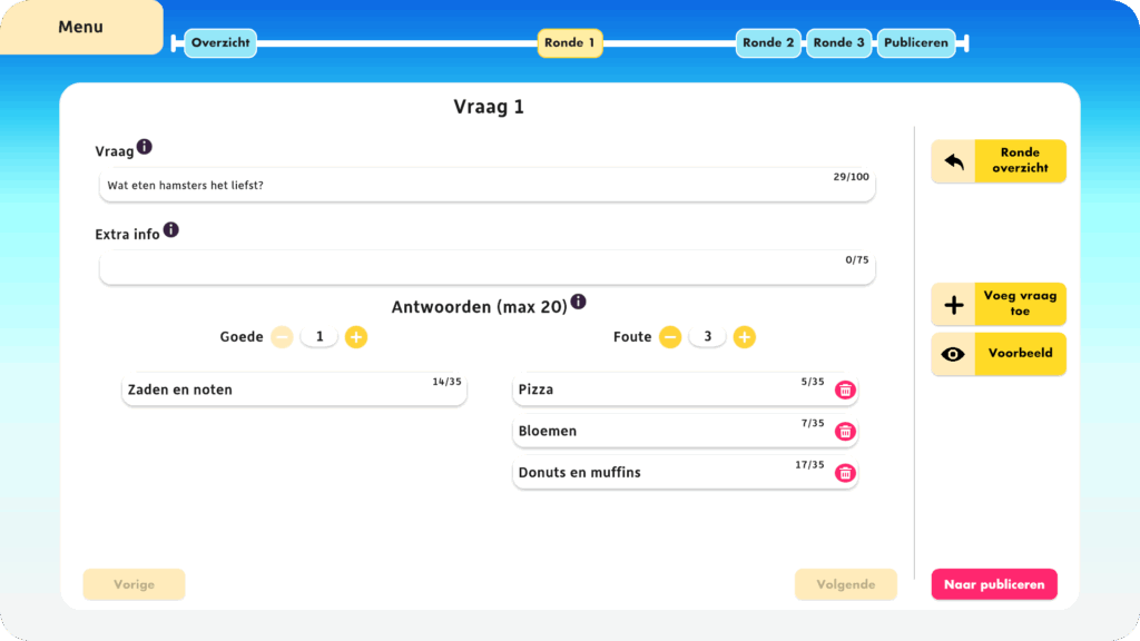 Nu we klaar zijn met de ronde-instellingen van ronde 1 kunnen we de vragen gaan invullen.