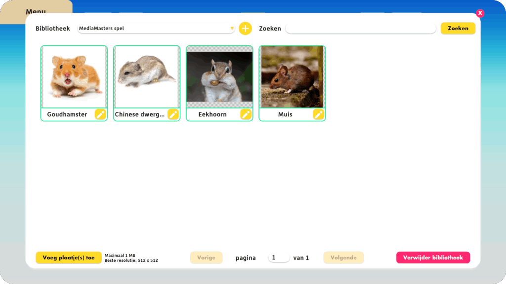 Heb je zelf plaatjes verzameld? Dan kun je een eigen bibliotheek maken door op het plusje naast ‘Springlab bibliotheek’ te klikken. Daarna kun je je eigen plaatjes toevoegen via de knop linksonder.